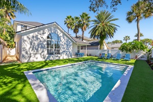 4 Bedrooms • 3 Bathrooms (2 full, 1 half) 3 Baths (2 full, 1 half) • Sleeps 1-10Experience Jacksonville Beach in this stylish 4BR, 2.5BA home with a private pool, lush turf backyard, and spacious living room. Enjoy premium furnishings, high-speed WiFi, and an A/C game room with arcade fun. The primary suite includes a soaking tub, and the well equipped kitchen makes dining easy. Just a 5-min bike ride or 20-min walk to the beach, close to Mayo Clinic, Baptist Beaches, and TPC Sawgrass.