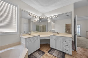 - 2.5 bathrooms, featuring a spacious primary suite with a soaking tub
